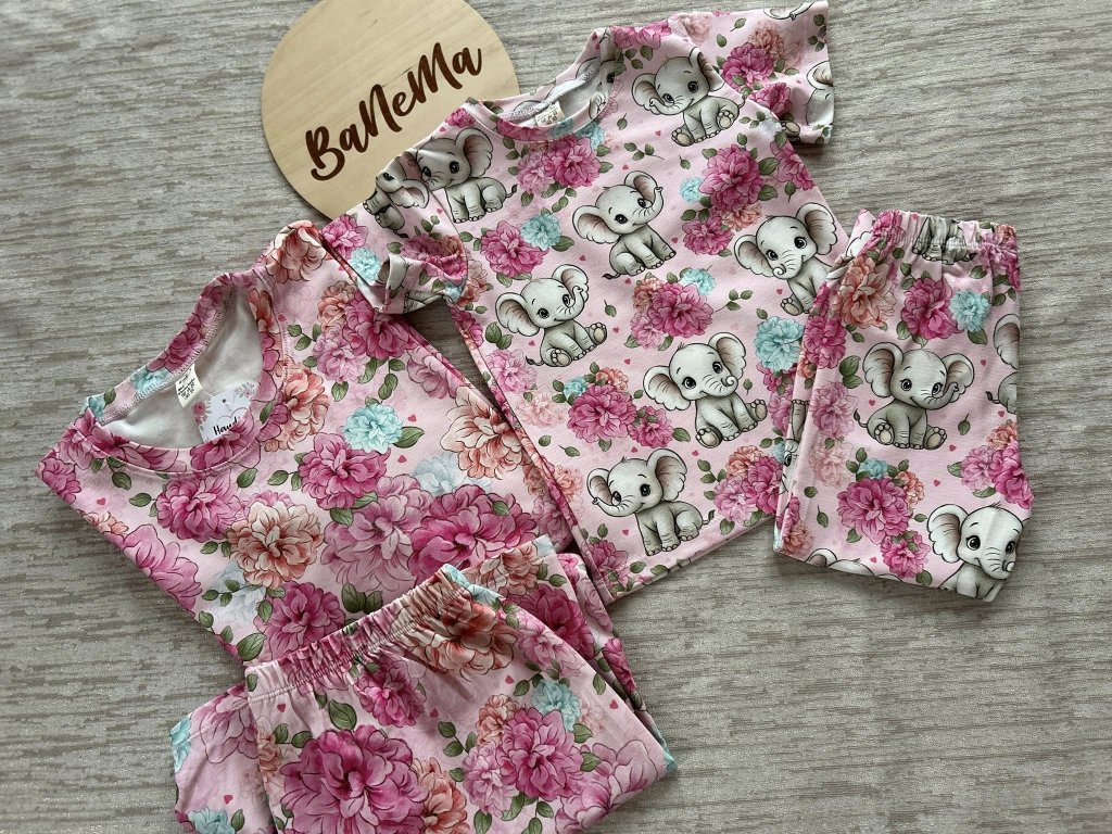 Slaďte se svojí malou princeznou i na spaní a užijte si společný čas v nádherných matchy matchy pyžamech Haydi. Dámské je květinové, dětské má v potisku navíc roztomilé slony.