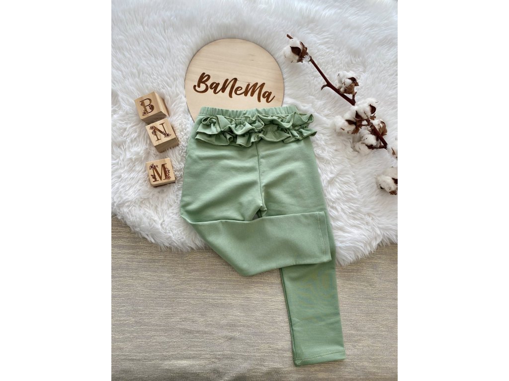 Krásné legíny s volánkem na zadečku, v zelenkavé barvě.