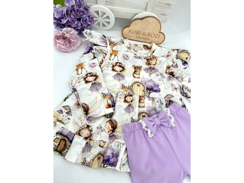 Nádherné světle fialové legíny, které mají v pase mašli která je lemovaná bílou krajkou, která působí něžný a romantický vzhled.