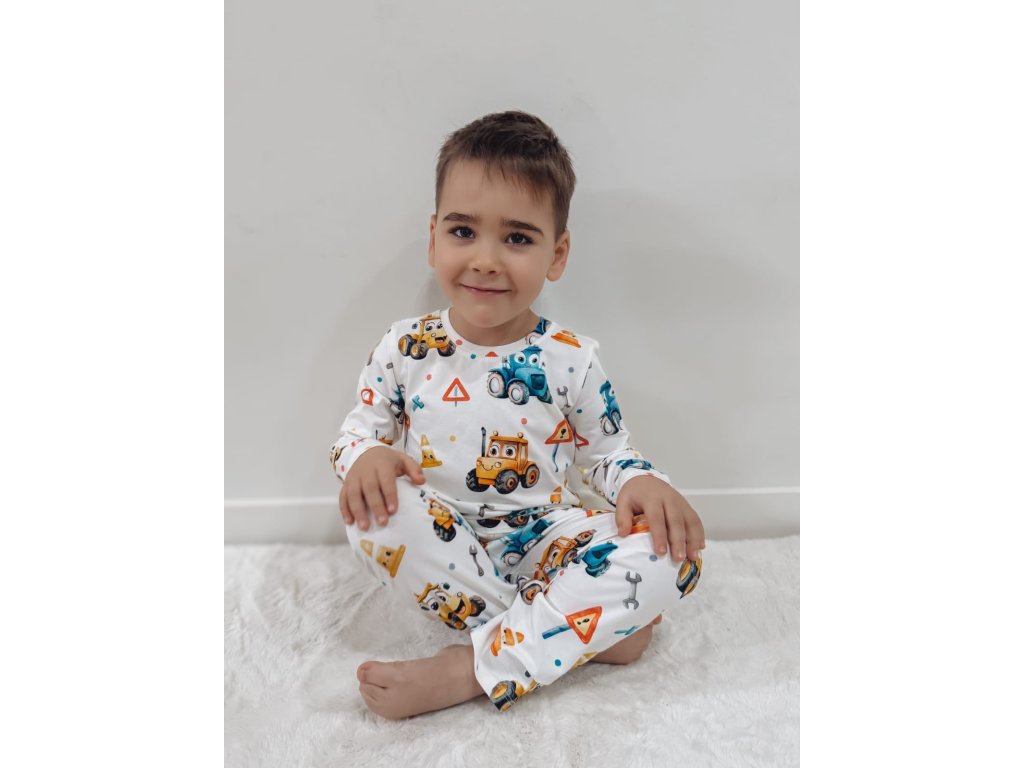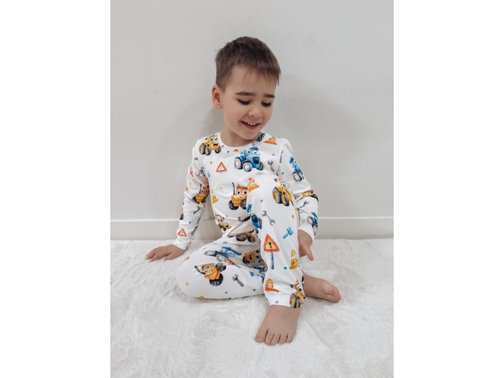 Nádherné pyžámko pro milovníky pracovních strojů, bagr, nářadí. Každý malý kutil si najde to své.