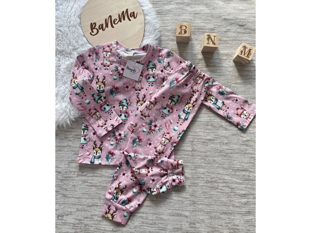 Krásné Vánoční pyžámko, se srnečkami zabalených do teplých kožíšků, ve vzoru jsou dárečky, ozdoby, kytičky. V krásné růžové barvě. Každé holčičce udělá radost.