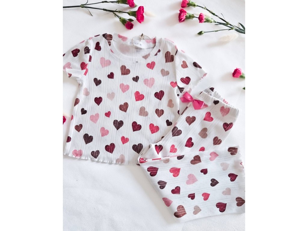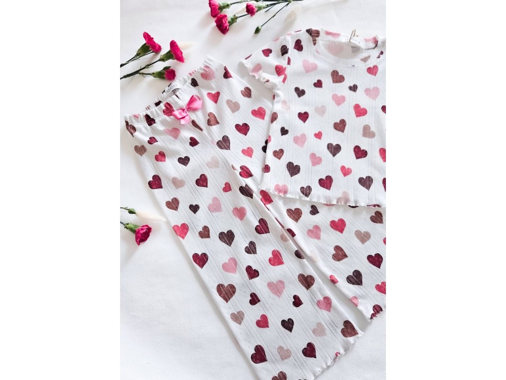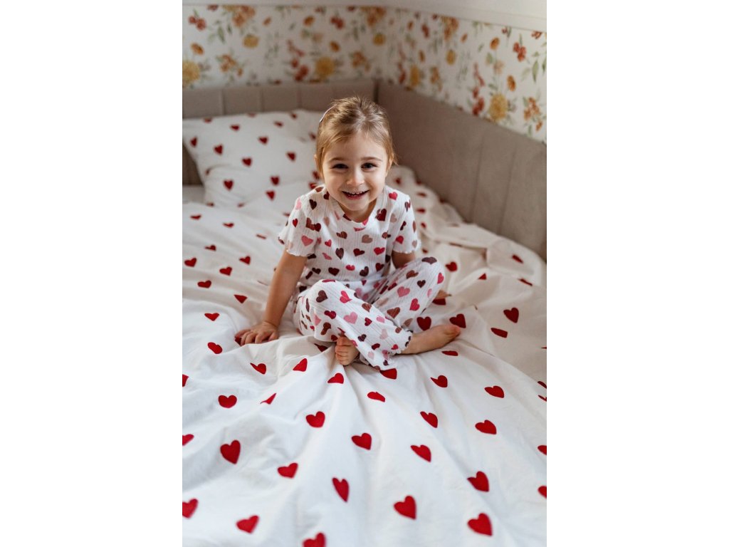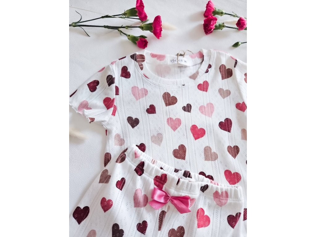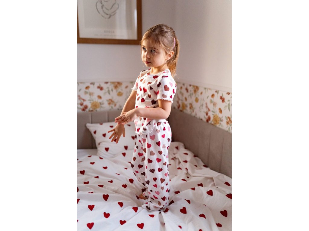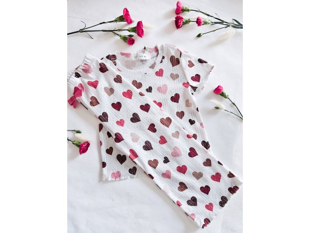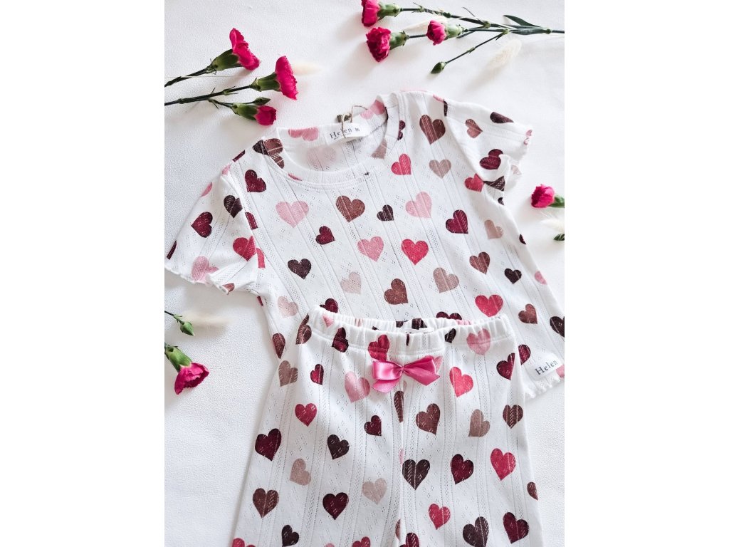 Nádherné pyžamo které je vyrobené ze 100% bavlny na ecru podkladu se s barevnými srdíčky. Je velmi vzdušné, měkké a příjemné na dotek, ideální na jarní a letní noci. Pro pohodlný a klidný spánek.