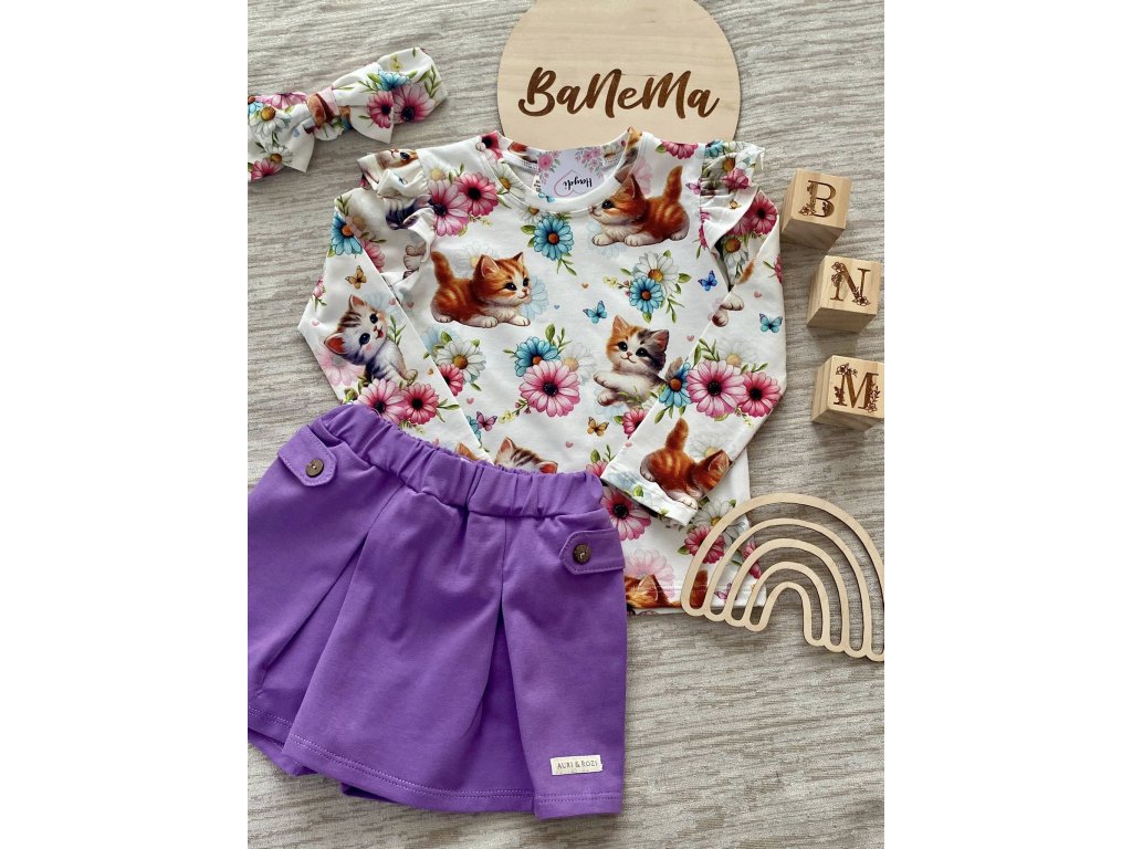 Zapomeňte na kompromisy mezi sukní a šortkami - tento kousek nabízí dokonalou kombinaci obojího v jednom stylovém balení. Tyto okouzlující sukňošortky jsou skvělým kouskem pro malé i velké parádnice. Jsou navrženy s praktickými sklady a roztomilými knoflíčky, které dodávají hravý vzhled, jsou pro každodenní dobrodružství, oslavy nebo jen tak na hřiště. Tento zářivě fialový odstín vnáší do šatníku radost a barvy, a snadno se kombinuje s různými topy a doplňky.