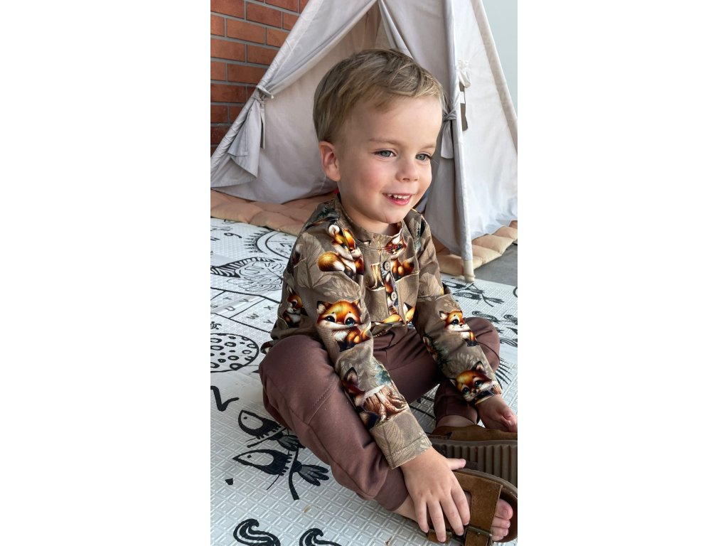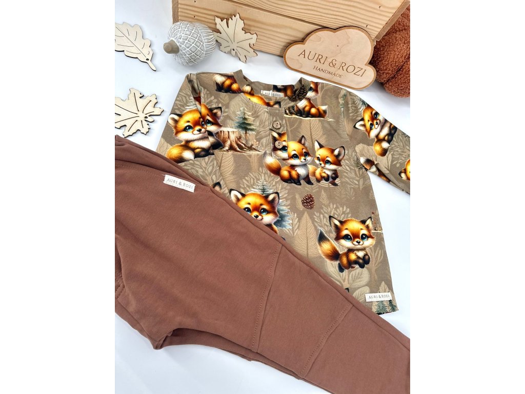 Krásné podzimní tepláky baggy, v hnědé barvě. K teplákům se hodí novinka, tričko s liškami.