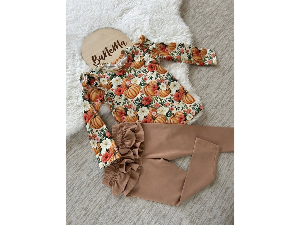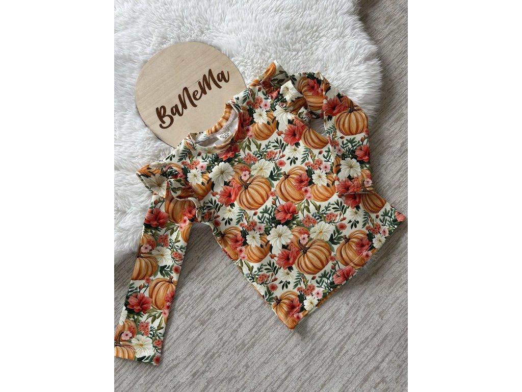 Podzim Nám už klepe na dveře a my přicházíme s novinkou, tričko s dýněmi, zahalené do kvítků podzimních květin. Můžete skombinovat s černými, zelenými, světle i tmavě hnědými legínami a máte krásný podzimní outfit.
