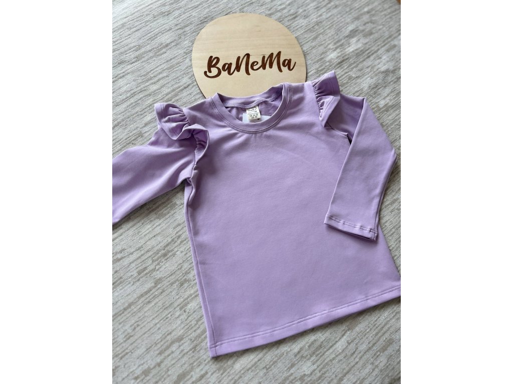 Jestli máte rádi jednoduchost a lehkost, tak tu máme toto tričko v krásné barvě lila s jemným volánkem na ramínku. Máme ve stejné lila barvičce legíny,gumičku a čelenku s mašlí.