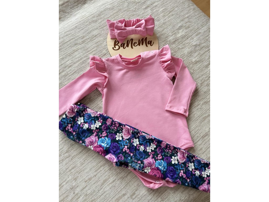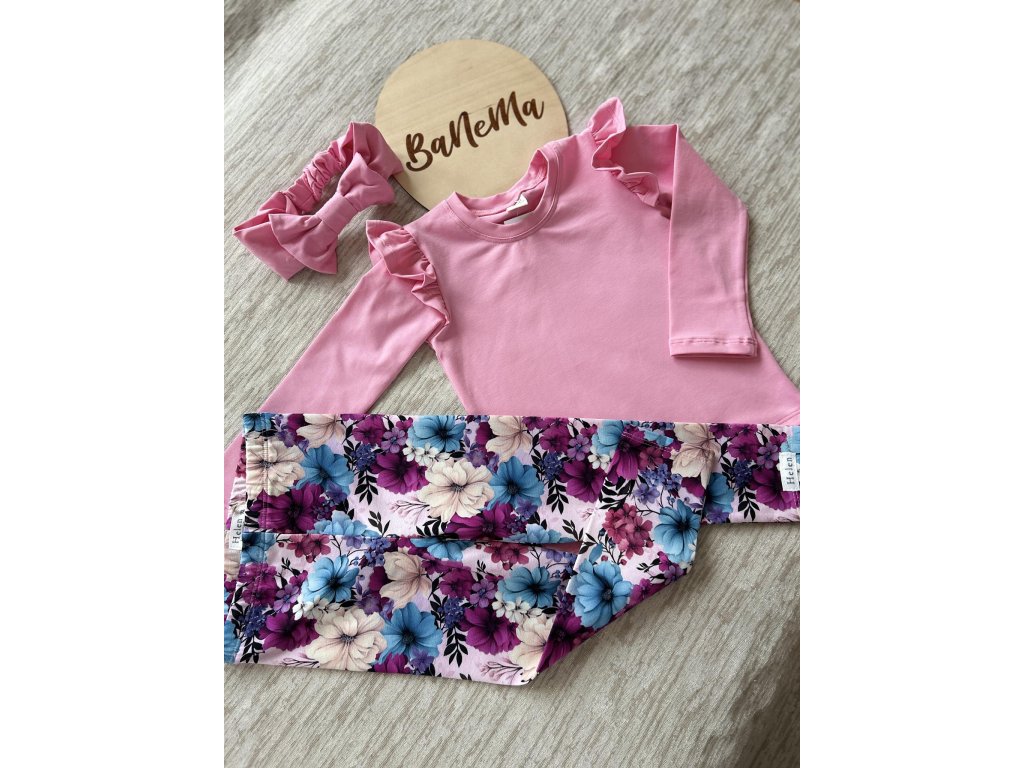 Jestli máte rádi jednoduchost a lehkost, tak tu máme toto triko v oblíbené barvě všech holčiček a to je růžová. Máme ve stejné růžové barvičce legíny a čelenku s mašlí.