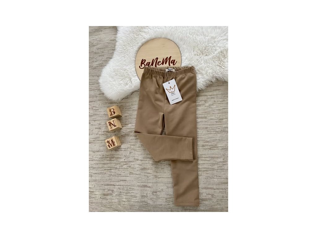 Legíny v mocca barvě. Mají jednoduchý, hladký design a elastický pas.