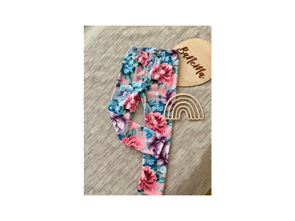 Dívčí legíny Haydi velurové květy na broskvové