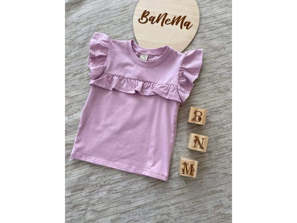 V jednoduchosti je krása a ozvláštněna jemným detailem o to větší. 4 krásné pastelové barvy, které ladí k vzorovaným spodním dílům i stejnobarevným legínám a šortkám. Tady pastelová fialková lila.